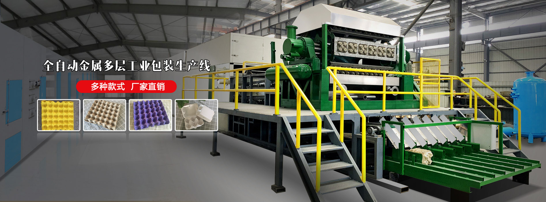 主要產(chǎn)品有:各種大中小型蛋托機(jī),流水線(xiàn),整套設(shè)備;紙漿??s機(jī),包裝機(jī),定型機(jī);各種模具蛋托成品,烘干鐵托盤(pán),晾曬珠托盤(pán)以及各種蛋托機(jī)配件。產(chǎn)品規(guī)格齊全,質(zhì)量精良,銷(xiāo)往全國(guó)各地并遠(yuǎn)銷(xiāo)美國(guó)、俄羅斯以及東南亞一些國(guó)家和地區(qū),深受?chē)?guó)內(nèi)外用戶(hù)的信賴(lài)。